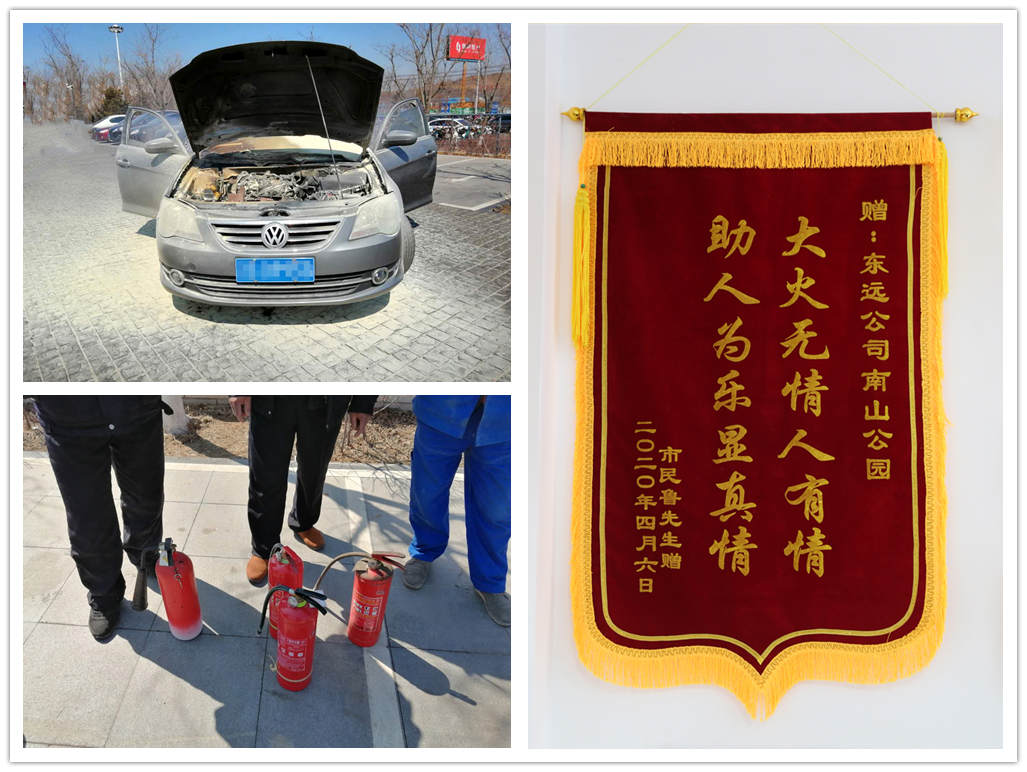 如果說(shuō)陪伴是最長(zhǎng)情的告白,那么“守護(hù)平安”則是景區(qū)保安隊(duì)員最恒久的承諾。當(dāng)?shù)谝粫r(shí)間發(fā)現(xiàn)停車場(chǎng)內(nèi)游客停放的車有煙冒出時(shí),我們的保安隊(duì)員一邊打119報(bào)警,一邊迅速拿起滅火器跑到事發(fā)車輛前,不畏竄起的火苗在119到達(dá)之前將其撲滅。當(dāng)游客得知情況匆匆忙忙跑下山看到眼前的一幕,緊緊的拉住保安隊(duì)員們的手連聲道著感謝,如果沒(méi)有及時(shí)給予處理不僅僅是自己車輛造成更嚴(yán)重的損失,也會(huì)給這滿山都是草木的南山公園造成不可估量的后果。事后游客送來(lái)錦旗表達(dá)感激之情。