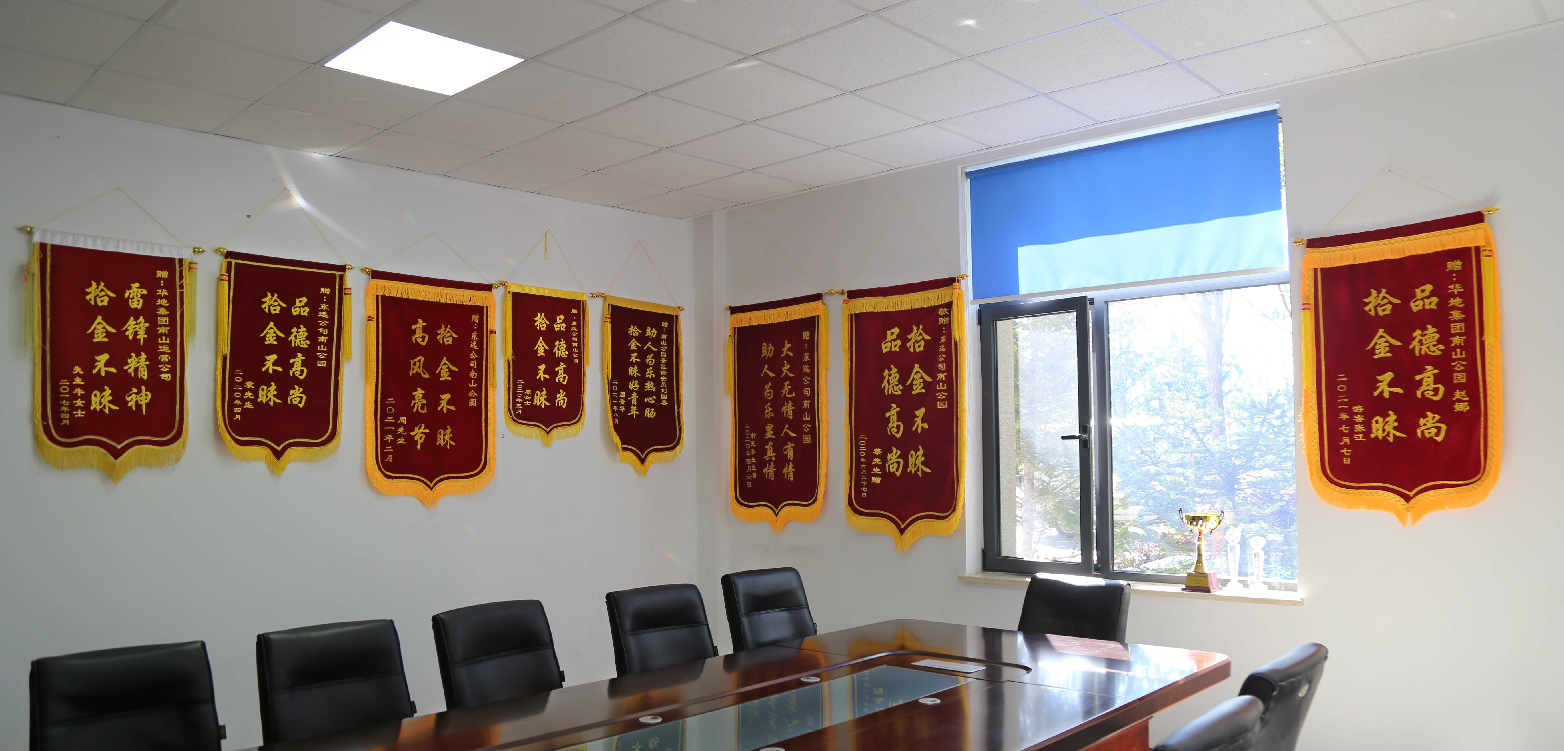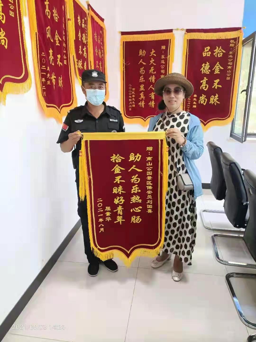 遺失物品登記本上登記著無(wú)數(shù)條記錄,身份證、鑰匙、包、手機(jī)、錢等等。那里也記錄了我們所有工作人員365天堅(jiān)守崗位的執(zhí)著與延續(xù)的雷鋒精神。在那會(huì)議室墻面上掛著的一面面錦旗承載了市民對(duì)于我們?nèi)A地集團(tuán)東遠(yuǎn)人的一份感恩、一份贊許、一份鼓勵(lì)。他們用實(shí)際行動(dòng)踐行了作為南山公園守護(hù)者的責(zé)任與擔(dān)當(dāng)。